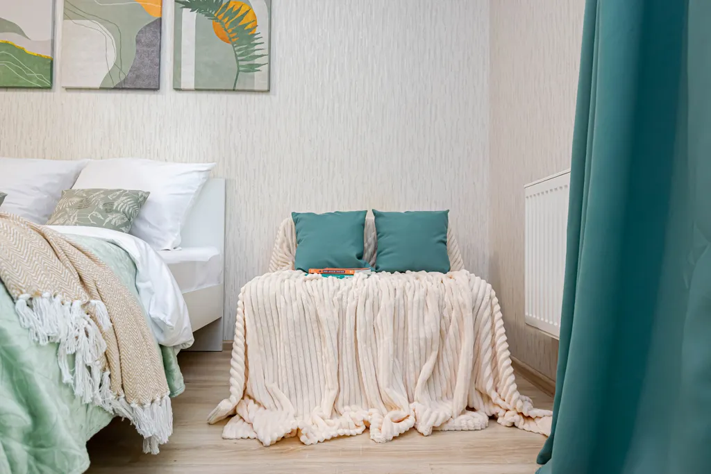 - Комфортабельной кроватью с ортопедическим матрасом, заправленной чистым свежим бельём и уютным раскладывающимся креслом.