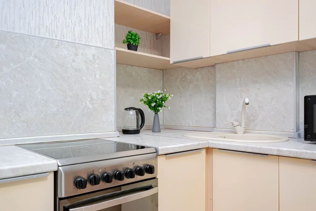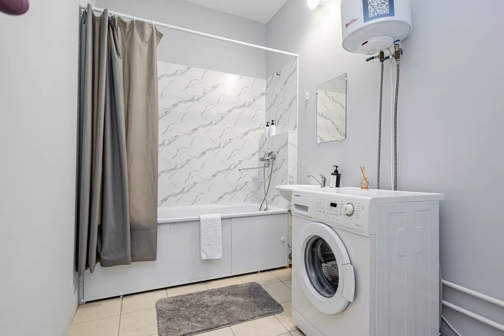 - Необходимая бытовая техника и посуда (стиральная машина, чайник, СВЧ, плита, духовка, холодильник, водонагреватель и столовые принадлежности)