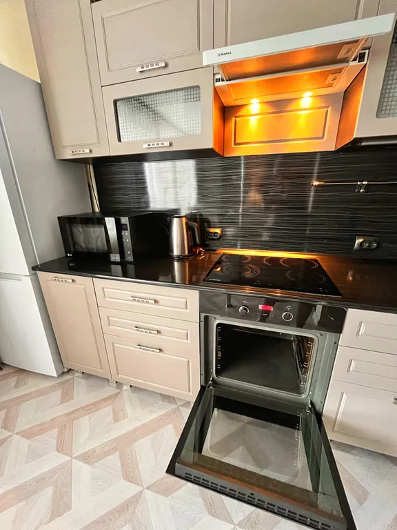 Квартира располагается на 16 этаже 16-ти этажного дома. В квартире выполнен современный дизайнерский ремонт с великолепным освещением. Квартира оборудована всей необходимой техникой и мебелью для комфортного проживания 4-х человек. Двуспальная кровать с одеялом и подушками из овечьей шерсти, раскладной невероятно мягкий диван, смарт-тв с подпиской wink (где вы найдете любимые фильмы и сериалы для просмотра). Бесплатный wi-fi. Прекрасная полностью функциональная кухня со всей необходимой утварью. Большой трёхкамерный холодильник.